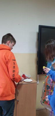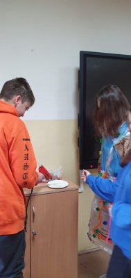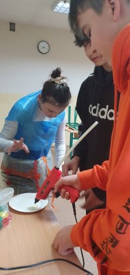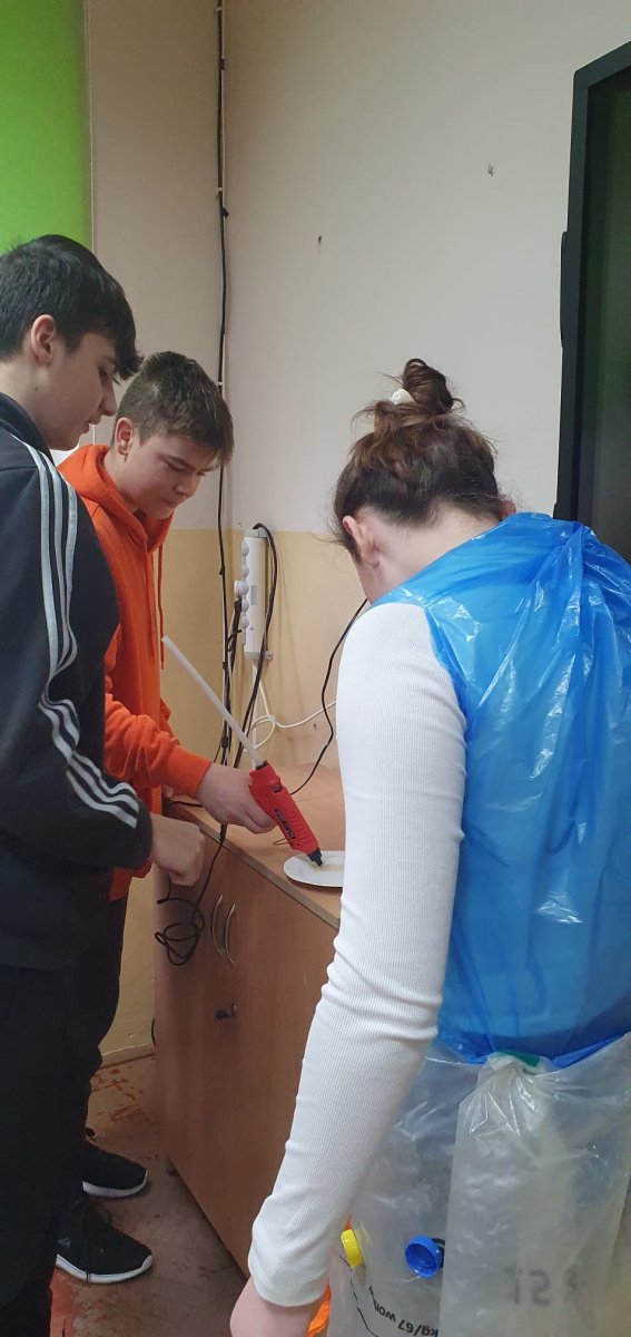 Klasa siódma w trakcie przygotowań do powitania pierwszego dnia wiosny korzystała z pistoletu na gorący klej pozyskanego z programu #LaboratoriaPrzyszlosci