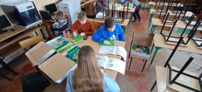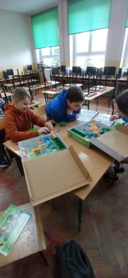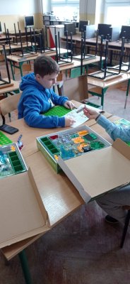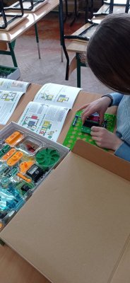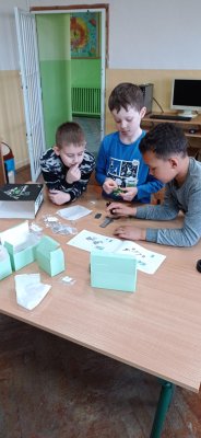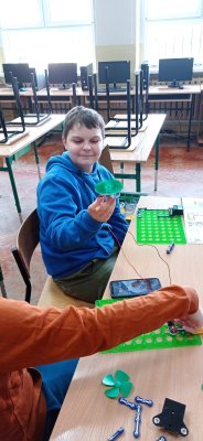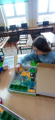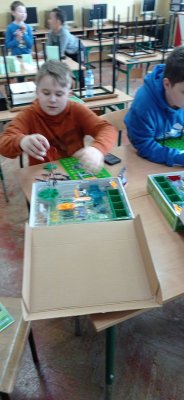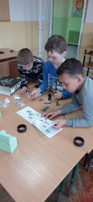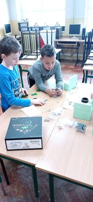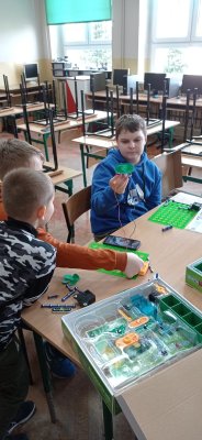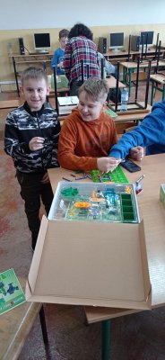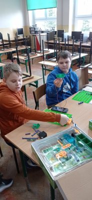 Uczniowie klasy piątej oraz drugiej zgłębiali tajniki elektroniki i  robotyki wykorzystując materiały pozyskane z programu #LaboratoriaPrzyszlosci.