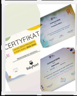 Certyfikaty - ukończenie projektów: Bajkowa Wyprawa, Sportowa Wyprawa, Cztery Pory Roku.