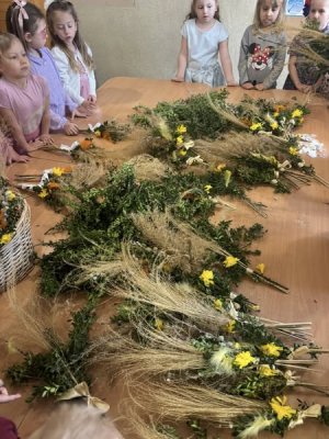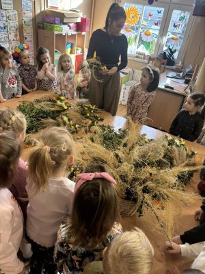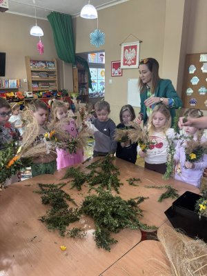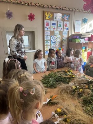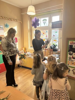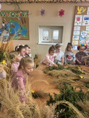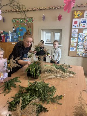 Z okazji nadchodzących Świąt Wielkanocnych przedszkolaki podczas zajęć uczestniczyły w warsztatach robienia i ozdabiania palm wielkanocnych. Celem warsztatów było kultywowanie pięknej polskiej tradycji ludowej, jak również zainteresowanie najmłodszego pokolenia rękodziełem ludowym. Ze zgromadzonych materiałów przyrodniczych, bibułkowych kwiatów, tasiemek i wstążek dzieci wykonały okazałe i kolorowe palemki. Barwne, poświęcone palmy będą piękną ozdobą w domach naszych przedszkolaków.