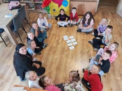 Na dzisiejszej lekcji bibliotecznej zerówka poznała książkę pt. " Wypożyczalnia skrzydeł". Dzieci z zainteresowaniem słuchały opowieści o przyjaźni, wspólnych zabawach i wzajemnym wsparciu. Rozmawialiśmy o tym, jak ważne jest mieć przyjaciela i jak dbać o dobre relacje z innymi.
