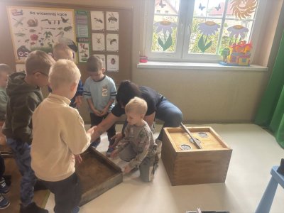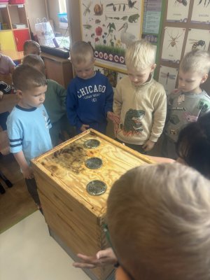 Dzieci miały okazję zbudować ul spróbować świeżego miodu, zobaczyć z bliska pasiekę, poznać budowę ula, posłuchać opowiadania o życiu pszczół z ust pani Ksenii – zaprzyjaźnionej pszczelarki, przekonać się do czego służą ramki w ulu i z czego są zrobione, poczuć zapach prawdziwego, pszczelego wosku oraz smak miodu.