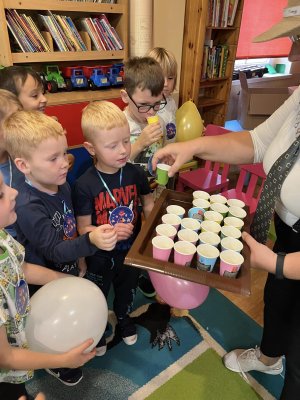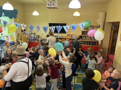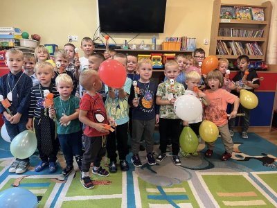 Tego dnia czekało na dzieci wiele niespodzianek i atrakcji. Zostały zaproszone do wspólnej zabawy, udziału w konkursach i tańców przy ulubionych przebojach muzyki dla dzieci. Radość i śmiech świadczyły o wspaniałej zabawie. Złożyliśmy wszystkim, maluszkom i starszakom życzenia samych słonecznych dni i radosnych chwil w naszym przedszkolu, aby każdy dzień był wspaniałą przygodą i niósł ze sobą wiele cudownych i pozytywnych doświadczeń.
