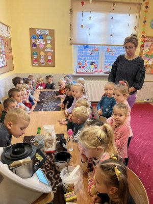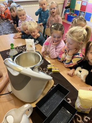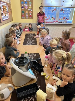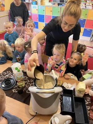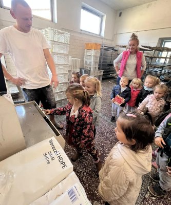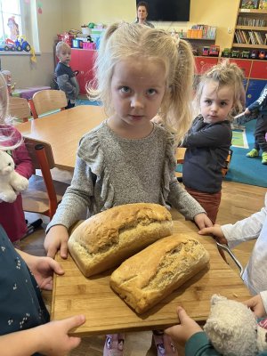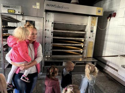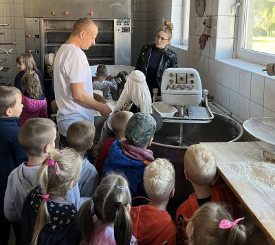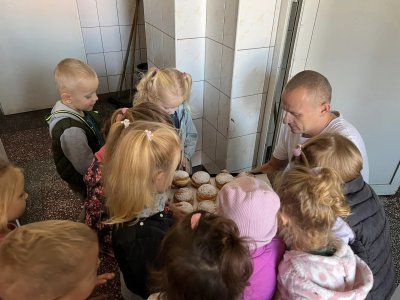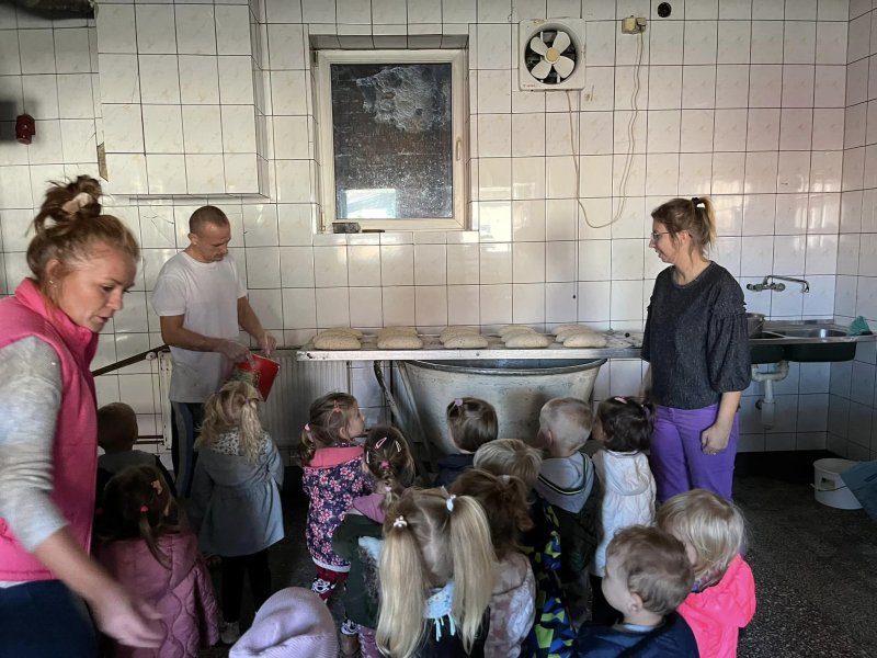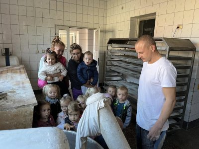 Dziś w przedszkolu dzień rozpoczęliśmy od pieczenia chleba i poznania historii jego powstania ,,Od ziarenka do bochenka”. Chleb wyszedł znakomity. Następnie odwiedziliśmy piekarnię Janusza i Renaty Ciosmaków.