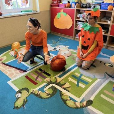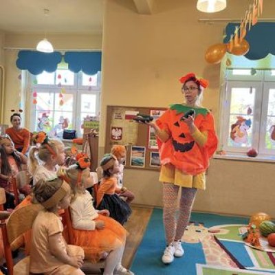 „Dzień Dyni” pozwolił nam poznać wielką różnorodność dyń i wzbogacił naszą wiedzę na ich temat. Wzięliśmy udział w licznych zabawach z udziałem dyni: dyniowe kręgle, slalom dyniowy, dyniowe zawody, skoki przez dynię oraz ziarnko do ziarnka. Na koniec odbyła się sesja w iście dyniowymi klimacie . Ten dzień był pełen wrażeń i radości.Dziękujemy pani Ola Spiżak , pani Karolina Osińska i Hanii za słodki poczęstunek. Naszej pani Alicja Dragan za pyszną zupkę także dziękujemy . Delicja