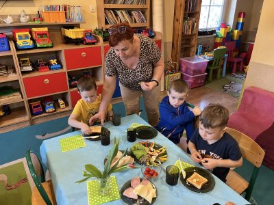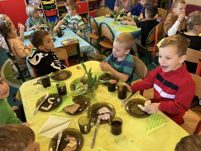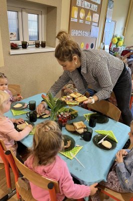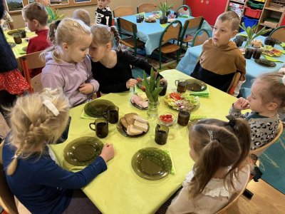 Dzieci bardzo ochoczo przygotowały śniadanie wykorzystując zdrowe produkty. Smakowało pysznie.