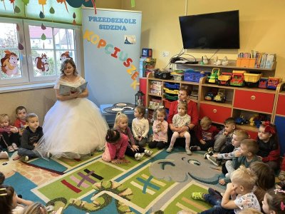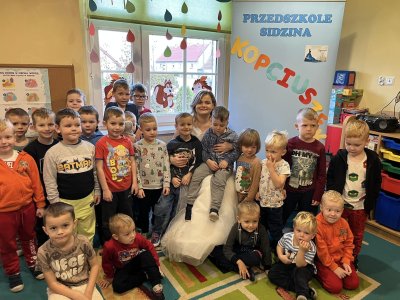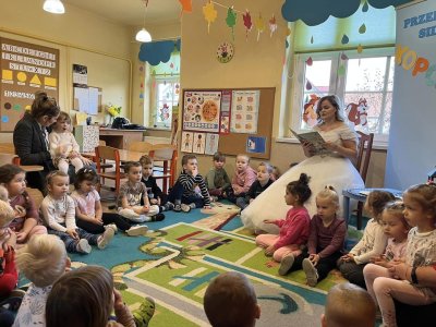 Dziś nasze przedszkole odwiedził nie kto inny jak nasz cudowny Kopciuszek - Pani Monika Biela .Prywatnie mama Jasia z grupy starszaków. Kopciuszek oczarowywał nas swoim magicznym głosem i oszałamiającą kreacją, iście z bajkowego klimatu. Piosenka zaśpiewana przez Panią Monikę pozwoliła puścić wodze fantazji .