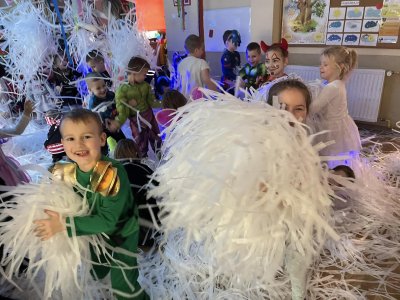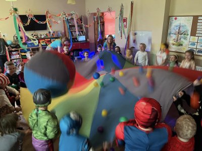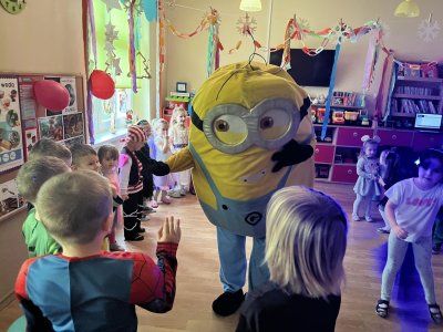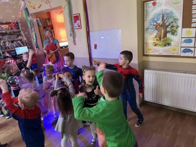 1 lutego w naszym przedszkolu odbył się taki bal. Tego dnia już od rana w przedszkolu pojawiały się kolorowe postacie.