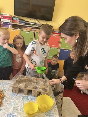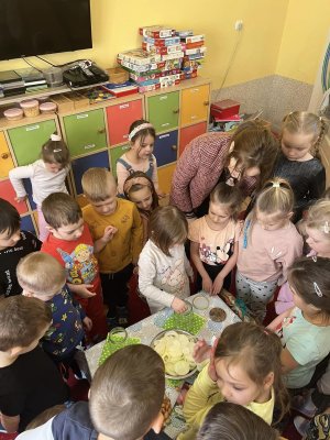 Dziś przedszkolaki poznały cudowne moce zdrowotne cebuli . Zrobiliśmy syrop z cebuli ,posadziliśmy cebulki i posialiśmy nasionka .