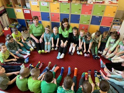 W naszym przedszkolu 21 marca był wyjątkowo barwny i kolorowy, nie tylko z powodu Pierwszego Dnia Wiosny. Właśnie tego dnia obchodzony jest Światowy Dzień Zespołu Downa. Nasze przedszkolaczki również przyłączyły się do akcji wspierania osób zmagających się z tą chorobą genetyczną i tego dnia ubrały kolorowe skarpetki „nie do pary” jako wyraz radości, tolerancji oraz solidarności z osobami z Zespołem Downa