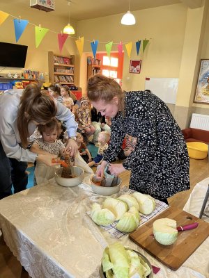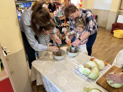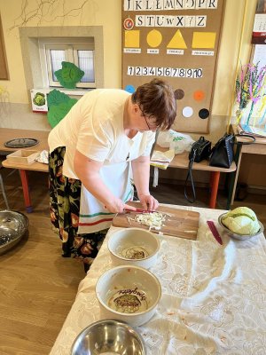 Dzieci poznały wartości odżywcze kapusty, sposób przygotowania kapusty do kiszenia oraz różnorodność kuchennych kapuścianych potraw. Bardzo dziękujemy przedstawicielkom Koła Gospodyń Wiejskich