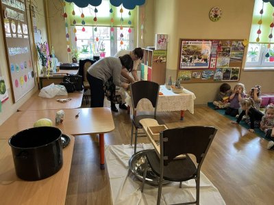 Dzisiaj królowała w przedszkolu kapusta. Z tej okazji zaprosiliśmy Panie z Koła Gospodyń Wiejskich z Makowic: Pani Wanda Szrom i Pani Agnieszka Szczęszek.