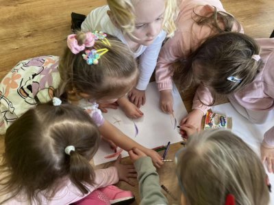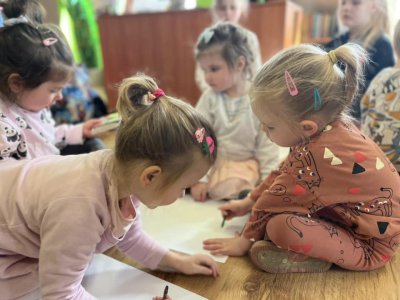 z Gminy Skoroszyce zaprosiły przedszkolaków na wysłuchanie bajki o wiośnie i zajęcia plastyczne. Było cudownie i wiosennie