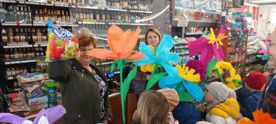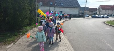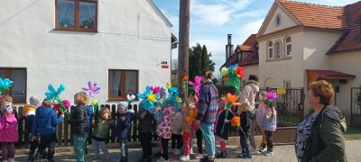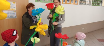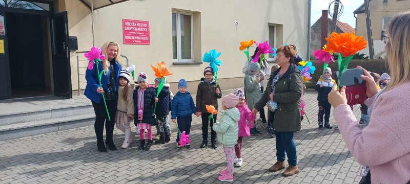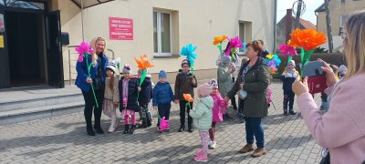 a dzisiaj pod opieką wychowawców, wyruszyły barwnym korowodem na spacer w poszukiwaniu pierwszych oznak wiosny. Napotkane osoby obdarowane zostały pięknymi, wiosennymi kwiatami. W ogrodzie przedszkolnymi posadziliśmy kolorowe kwiatki.