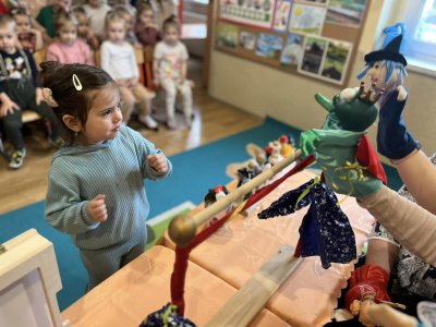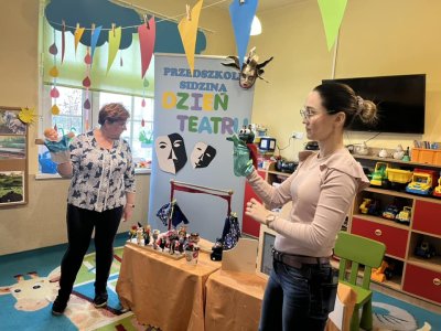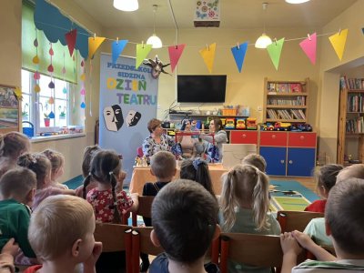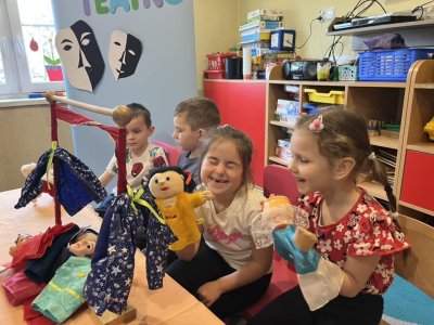 27 marca obchodziliśmy Dzień Teatru. Tego dnia przedszkolaki dowiedziały się, jak powstają kukiełki, poznały różne techniki teatralne: pantomima, balet, teatr cieni, teatr lalkowy, a także przypomniały i utrwaliły sobie, jak należy zachować się w teatrze. Oglądnęliśmy przedstawienie ,,Królewna z Sidziny”.