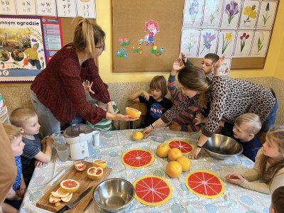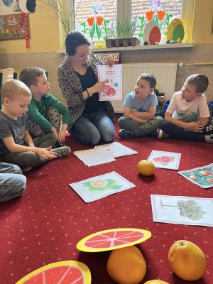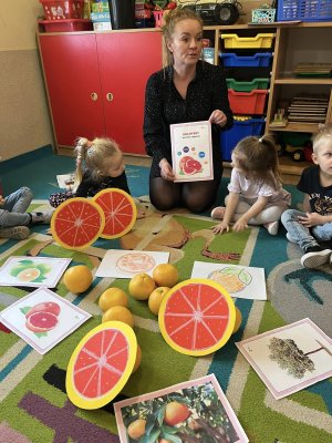,,Na tropie zdrowego odżywiania”.- grejpfrut. Dziś przedszkolaki poznały wartości odżywcze grejpfruta.