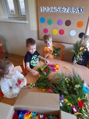 Dopiero żegnaliśmy zimę, a już czekamy na Święta Wielkanocne. Zgodnie ze świąteczną tradycją zrobiliśmy Palmę Wielkanocną, aby na Niedzielę Palmową znalazła się w naszej Kaplicy, bo to przecież tradycyjny symbol tej Niedzieli.