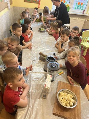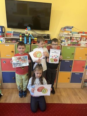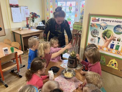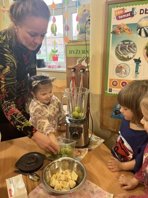 ,,Na tropie zdrowego odżywiania”.- kiwi. Dziś przedszkolaki poznały wartości odżywcze kiwi. Koktajl wyszedł rewelacyjnie.