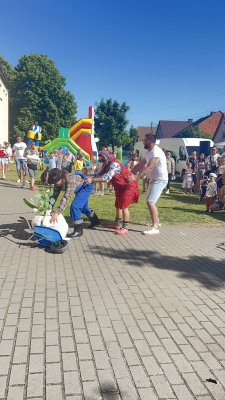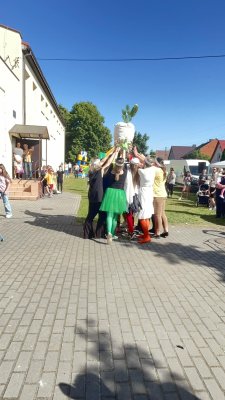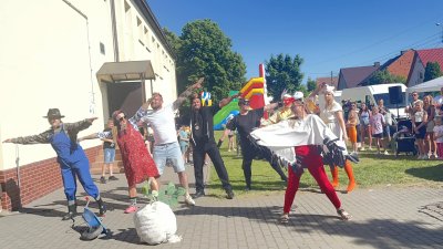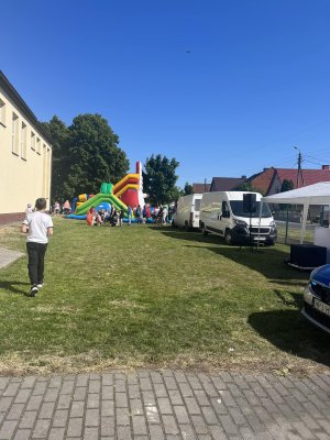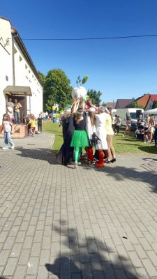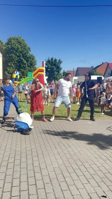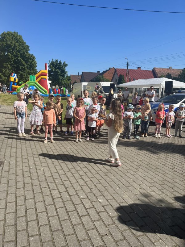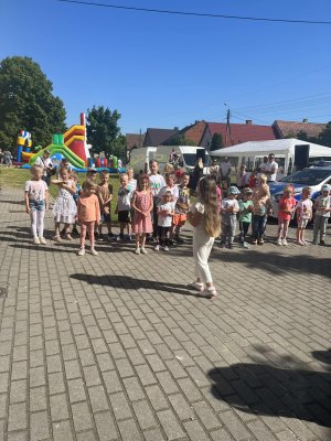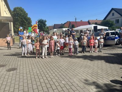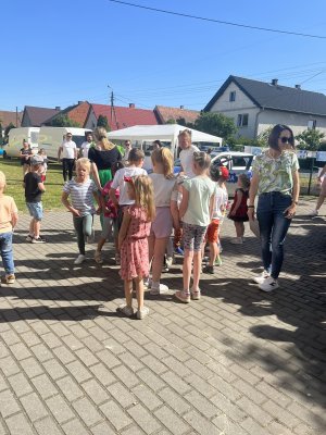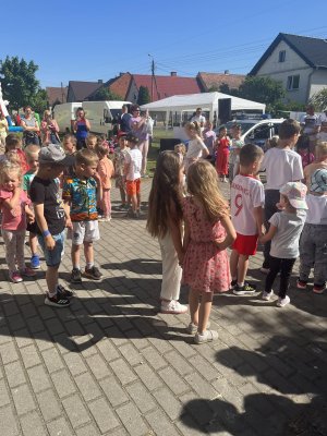 Były kiełbaski z grilla/ogniska, pyszne słodkości, zimne i gorące napoje, popcorn, wata cukrowa oraz świeże truskawki z plantacji Państwa Mariusza i Marty Dziergas. O oprawę muzyczną i nagłośnienie zadbał Pan Łukasz Duda. Dzięki wsparciu finansowemu Gminnej Komisji Rozwiązywania Problemów Alkoholowych i osobistego zaangażowania Pani Urszuli Chudobowicz Kierownika Gminnego Ośrodka Pomocy Społecznej dzieci mogły bawić się na dmuchanych zamkach. Pani Sołtys Urszula Fornalik zapewniła nam naczynia, zestawy biesiadne oraz namiot. Swoje wsparcie zapewniły również Pani Marta Tarczyńska Dyrektor Gminnego Ośrodka Kultury oraz Pani Justyna Zbroja. W ramach działań profilaktycznych odwiedzili nas również mundurowi Komendy Powiatowej Policji w Nysie mł. aspirant Marta Kublin i funkcjonariusze Ruchu Drogowego.