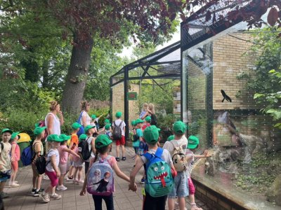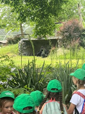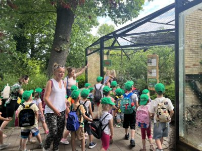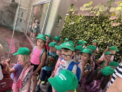 do Ogrodu Zoologicznego w Opolu. Dzieci przed wyjazdem przypomniały sobie zasady bezpiecznego podróżowania i zachowania w czasie wycieczki. Celem wycieczki było wzbogacanie przeżyć dzieci, rozwijanie ich zainteresowań i zaspokajanie dziecięcej ciekawości. Przedszkolaki z niecierpliwością i mocno podekscytowane zastanawiały się jakie zwierzęta zobaczą. Dzieci miały okazję zobaczyć niespotykane na co dzień zwierzęta i ptaki - m.in, rysie, wilki, hipopotama, małpki, orła, żyrafy, lwy, tygrysy. Wycieczka okazała się nie tylko wspaniałym przeżyciem, ale również atrakcyjną lekcja przyrody. Pobyt w ZOO dostarczył im wiele radości był dla nich wspaniałą lekcją przyrody przeżytą w ciekawym