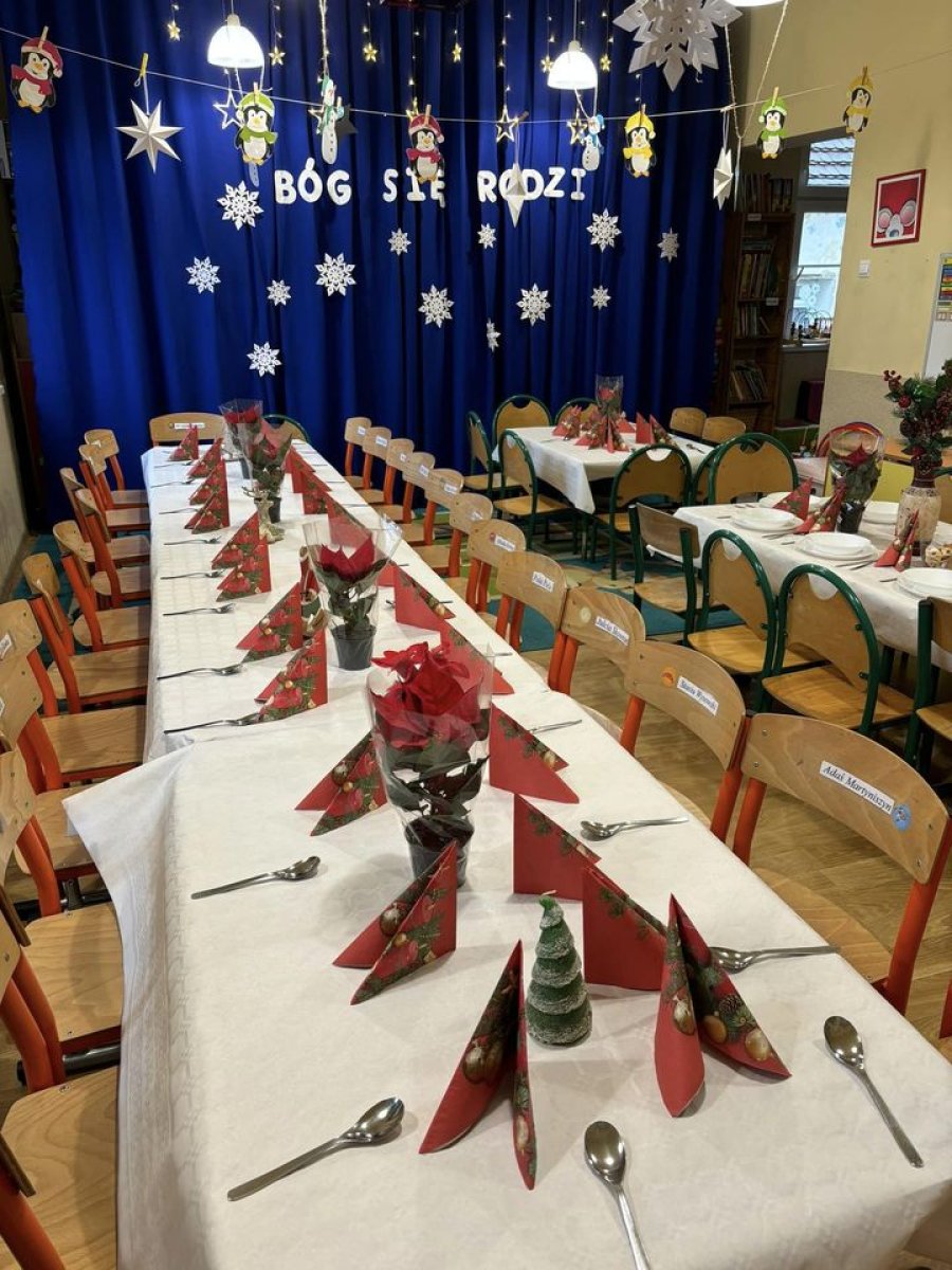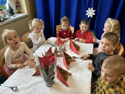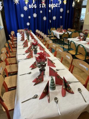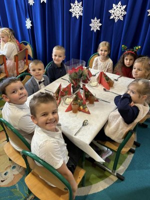Czas upłynął w bardzo miłej, serdecznej atmosferze. Był pyszny barszczyk z uszami i pierożki . Wszystkie dzieci czuły zbliżające się wielkimi krokami Święta Bożego Narodzenia.