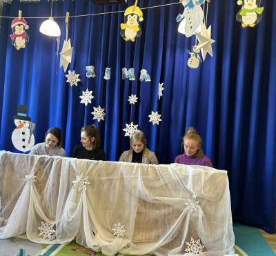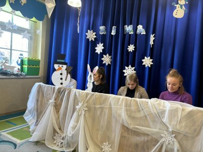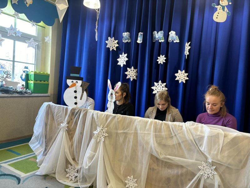 Teatrzyk kukiełkowy przedstawiający cudowną opowieść wspaniałego bałwanka .