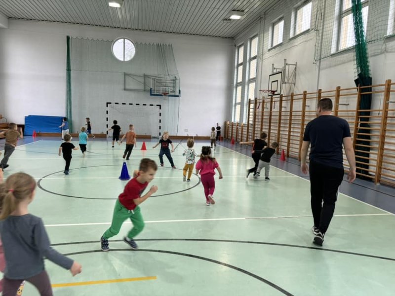 Dziś zajęcia ruchowe z naszymi przedszkolakami fantastycznie przeprowadził nauczyciel w-f Jan Jędrychowski.