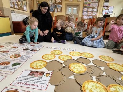 Nie zabrakło również zabawy w "dostawcę pizzy” oraz zabaw z chustą animacyjną, która swoim kształtem przypomina tą włoską potrawę.