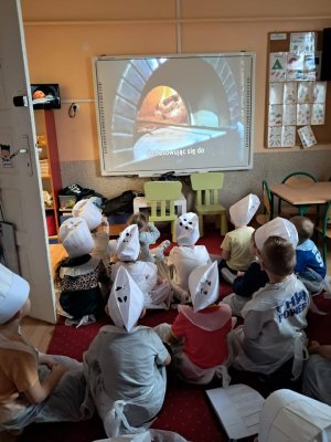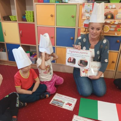Podczas zajęć dzieci poznały krótką historię pizzy, dowiedziały się, z jakiego kraju pochodzi oraz poznały składniki, które są niezbędne do jej przygotowania.