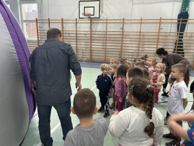 Dzisiaj nasze przedszkolaki oraz uczniowie klas 1-4 uczestniczyły w zajęciach o nazwie HORYZONTARIUM. Dzieci oglądały filmy naukowe w specjalnie do tego celu przygotowanej kopule oraz wykonywały pamiątkowe zdjęcia. Tematyka zajęć obejmowała wędrówkę Ziemi dookoła Słońca oraz zmiany pór roku. Dziękujemy za zaproszenie.