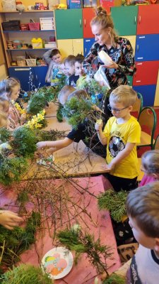 Święta Wielkanocne to magiczny czas, a palma to tradycyjny symbol Niedzieli Palmowej. Przedszkolaki z pomocą Pań dekorowały palmę wielkanocną. Dzięki tej działalności dzieci kultywowały tradycję i zwyczaje Wielkanocne związane z Niedzielą Palmową oraz Wielkanocą, pogłębiały wiedzę na temat symboliki i znaczenia palmy w obrzędowości ludowej. Rozbudzały inwencję twórczą; przekaz wartości i tradycji ludowej oraz integrację społeczności lokalnej. Tradycyjne palmy wielkanocne przygotowuje się z wierzby, która zgodnie z tradycją jest symbolem nieśmiertelności duszy. Święcenie palmy wielkanocnej to piękna tradycja, według której palmy chronią domowników przed nieszczęściem.
