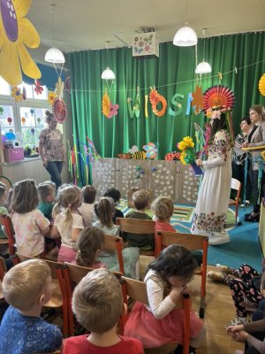 Po długiej zimie, chcemy ciepła, kwiatów, zielonych drzew i śpiewających kwiatów. We czwartek 21 marca wszystkie dzieci świętowały Pierwszy Dzień Wiosny. Uroczystości powitania Wiosny rozpoczęły się od zabaw związanych z tematyką pór roku oraz teatrzyku. Mimo wielu atrakcji najbardziej oczekiwaną częścią dnia było wyjście na spacer, podczas którego mogliśmy pożegnać zimę i powitać wiosnę. Dzieci radośnie maszerowały w wiosennym korowodzie, na czele którego widniała Pani Wiosna. Jesteśmy pewni, że starania naszych wspaniałych przedszkolaków sprawią, że Wiosna zawita do nas na dobre.