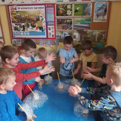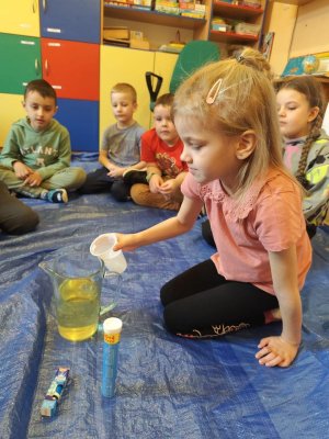 W dniu 22 marca obchodziliśmy w naszym przedszkolu Światowy Dzień Wody. Każdy przedszkolak odkrył tajemnice wody i jej duże znaczenie dla życia ludzi, zwierząt i roślin. W tym dniu odbyły się różne zajęcia edukacyjne oraz eksperymenty z wodą. Dzięki zabawom badawczym dzieci przyjrzeli się jakie substancje można rozpuszczać w wodzie a także co pływa a co tonie. Przedszkolaki obejrzały filmik edukacyjny, w którym poznały wędrówkę kropli wody i dowiedziały się skąd się bierze deszcz i jak ważna jest czysta woda. Poprzez takie działania możemy już od najmłodszych lat uczyć dzieci oszczędzać wodę i pokazać jakie jest znaczenie wody dla życia na Ziemi.