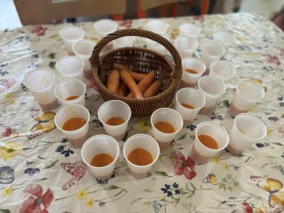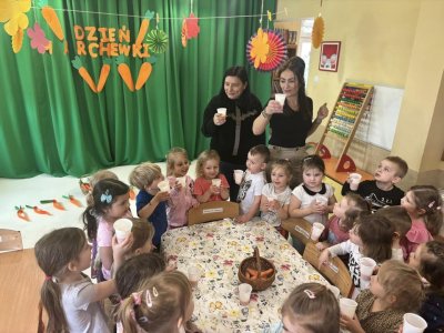 Celem tego dnia było przedstawienie i promowanie spożywania warzyw i owoców jako darów natury na przykładzie marchewki, rozwijanie umiejętności współdziałania w zespole oraz zapoznanie dzieci ze sprzętem gospodarstwa domowego. Wszystkie nasze działania były związane tematycznie z marchewką. Na obiad królował pyszny krem marchewkowy