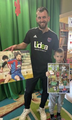 Dnia 8 kwietnia gościliśmy piłkarza z Klubu Sportowego LZS Starowice Adam Setla, który jest wujkiem naszego przedszkolaka Antosia. Adam stał się ikonom opolskich boisk. Niezwykle zdolny,pracowity, silny mentalnie, pewny siebie i bardzo skoncentrowany podczas meczu. Nikomu nie odpuści a o piłkę walczy do utraty tchu. Kozak. Jest wielu zawodników, którzy wyróżniają się w swoich zespołach grając ze słabszymi rywalami. Ale w tych kluczowych spotkaniach nie wytrzymują presji. I jest Adam Setla. Napastnik, który w hitowych starciach wchodzi jeszcze szczebel wyżej z poziomem swoje gry. Dzieci miały okazję osobiście poznać jego pracę, a przede wszystkim pasję. Zawodnik klubu rozmawiał z przedszkolakami głównie na temat piłki nożnej.