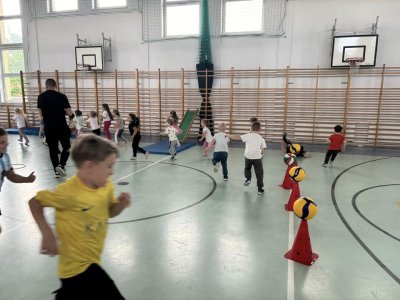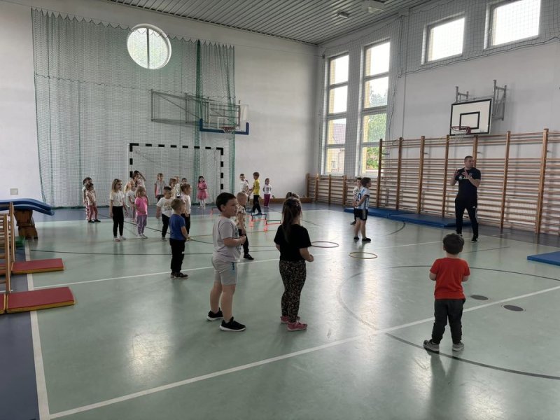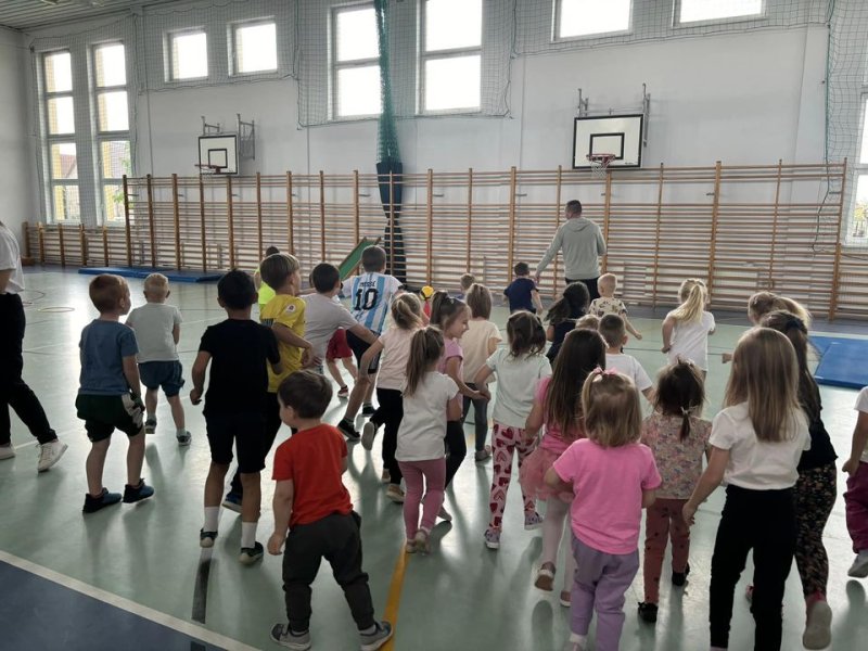 Dzieci z zaangażowaniem uczestniczyły w zabawach i chętnie wykonywały poszczególne zadania. Bardzo podobały im się zajęcia na sali gimnastycznej. Bardzo dziękujemy Panu Jankowi za przygotowanie i przeprowadzenie bardzo aktywnej lekcji. Było fantastycznie.