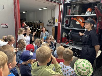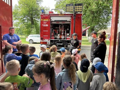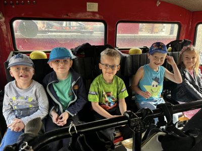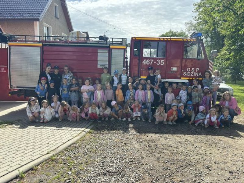 W dniu 6 maja z okazji Dnia Strażaka, dzieci z naszego przedszkola wybrały się z wizytą do Ochotniczej Straży Pożarnej w Sidzinie aby poznać tajniki pracy strażaków. Przedszkolaki dowiedziały się na czym polega praca strażaków i w jakich okolicznościach można wzywać straż pożarną. W trakcie spotkania strażacy zaznajomili dzieci ze sprzętem jakim dysponują podczas działań ratowniczo-gaśniczych, zachowaniem bezpieczeństwa w czasie pożaru, burzy oraz wypadku. Jednak największe zainteresowanie wzbudził wóz strażacki. Dzieci mogły pooglądać go z bliska, usiąść za jego kierownicą. Mogły wczuć się w rolę strażaka przymierzając hełm strażacki oraz lejąc wodę z węża strażackiego.