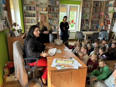 8 maja to Dzień Bibliotekarza i Bibliotek, dlatego nasze przedszkolaki postanowiły wybrać się do biblioteki, aby podziekować za pracę pań bibliotekarek oraz życzyć mnóstwa szczęśliwych dni, pełnych książkowych przygód. Przedszkolaki wykonały laurkę oraz zaśpiwały hucznie "Sto lat". Pani bibliotekarka oprowadziła dzieci po bibliotece oraz wyjaśniła jaką funkcję spełnia bibiloteka. Przedszkolaki były zaciekawione, obiecały niedługo wrócić, aby wypożyczyć książki.Dziekujemy pięknie za tak wspaniałą współpracę i owocną Ośrodek Kultury i Czesław Justyna Zbroja i Marta Tarczyńska