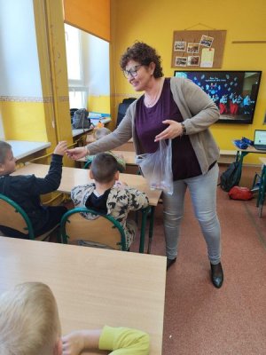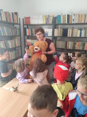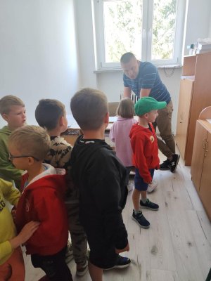 Następnie przyszli uczniowie udali się do sali, w której czekała na nich już przyszła wychowawczyni Pani Anna Samborska-Koc. Każde dziecko przedstawiło się oraz opowiedziało coś o sobie. Kolejnie Pani Ania przybliżyła dzieciom swoją osobę oraz przedstawiła jak będą wyglądać zajęcia w pierwszej klasie. Kazde dziecko otrzymało również słodki upominek od Pani Ani. Następnie wspólnie wybraliśmy się do zwiedzania biblioteki szkolnej oraz pokoju dla pedagoga szkolnego.