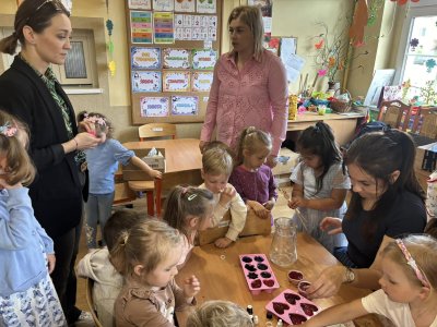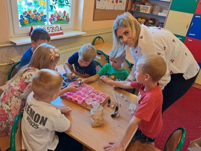 Dzisiaj w naszym przedszkolu odbyły się warsztaty glicerynowe, polegały one na wykonaniu kostek glicerynowego mydła o rozmaitych kształtach, zapachach i kolorach. Tak własnoręcznie przygotowane mydełka, zostaną następnie zapakowane i każdy z uczestników zabierze swoje mydlane dzieła do domu.