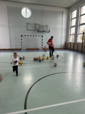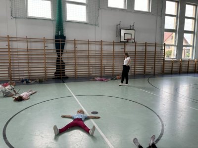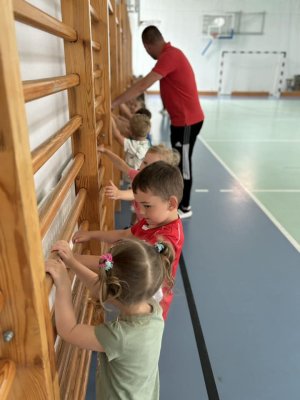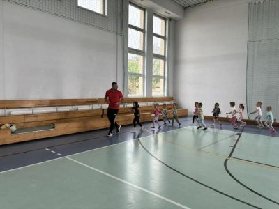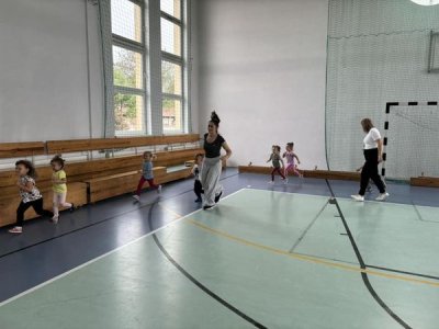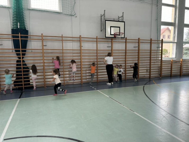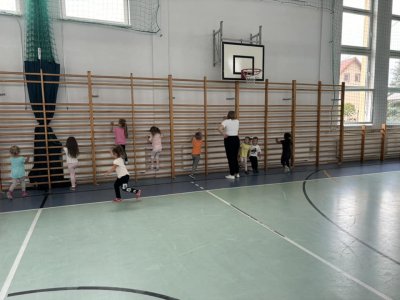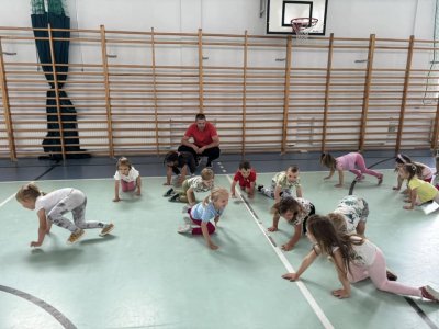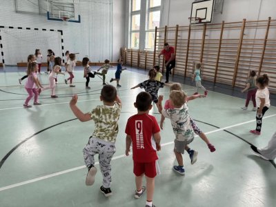Ćwicząc na sali gimnastycznej dzieci odczuwają radość w czasie zabaw i ćwiczeń, sprawnie reagują na umówione sygnały, a zabawy z podziałem na dwa zespoły, uczą zdrowej rywalizacji. Wracamy do sali przedszkolnej trochę zmęczeni, ale w dobrych humorach. Bardzo dziękujemy kolejny raz Panu Jankowi Jędrychowskiemu za zaproszenie oraz zaszczepienie w dzieci zamiłowania do aktywności fizycznej oraz ducha walki.