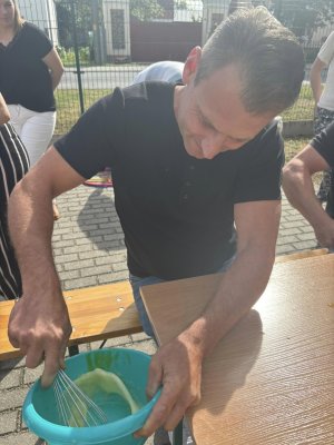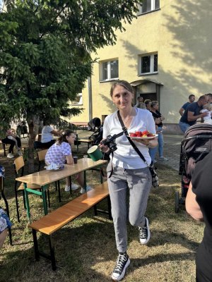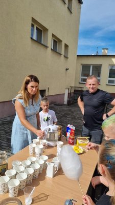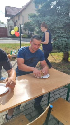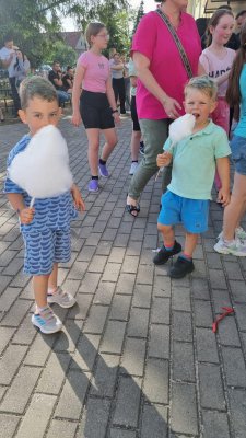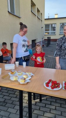 Wszyscy częstowali się kiełbaskami z grilla, popcornem, watą cukrową, truskawkami. Można było napić się lemoniady, kawy, herbaty oraz zjeść pyszne ciasto upieczone przez kochane mamusie. Dziękujemy Radzie Rodziców z przedszkola i szkoły, wszystkim rodzicom, którzy upiekli ciasta, muffinki i włączyli się w pomoc. To był piękny czas