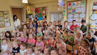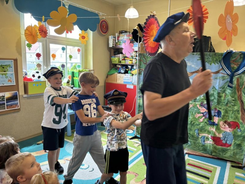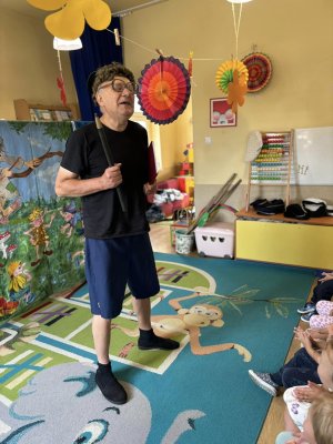 11 czerwca do przedszkola przyjechali aktorzy z Teatru im. Jana Kochanowskiego z wesołym teatrzykiem, który pokazywał przygody ,, Opowieści Dzięcioła ''. Dzieci miały okazję brać czynny udział w spektaklu opowiadającym historię Wróbelka idącego do szkoły.Przedstawienie było bardzo ciekawe i wesołe. Aktorzy byli bardzo zabawni, wprawili wszystkich w radosny nastrój. Przedstawienie miało charakter edukacyjny . Dzieci na sam koniec okazały swoje zadowolenie poprzez ogrom braw.