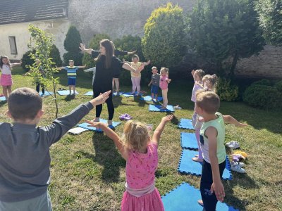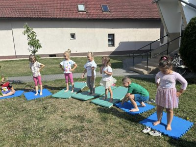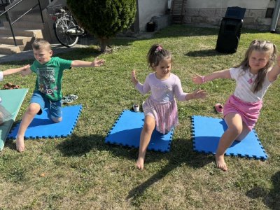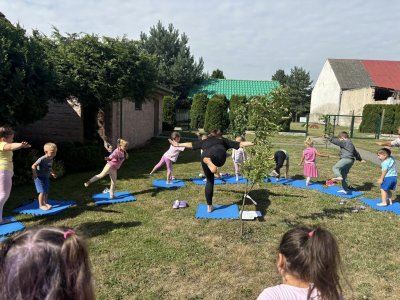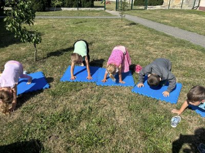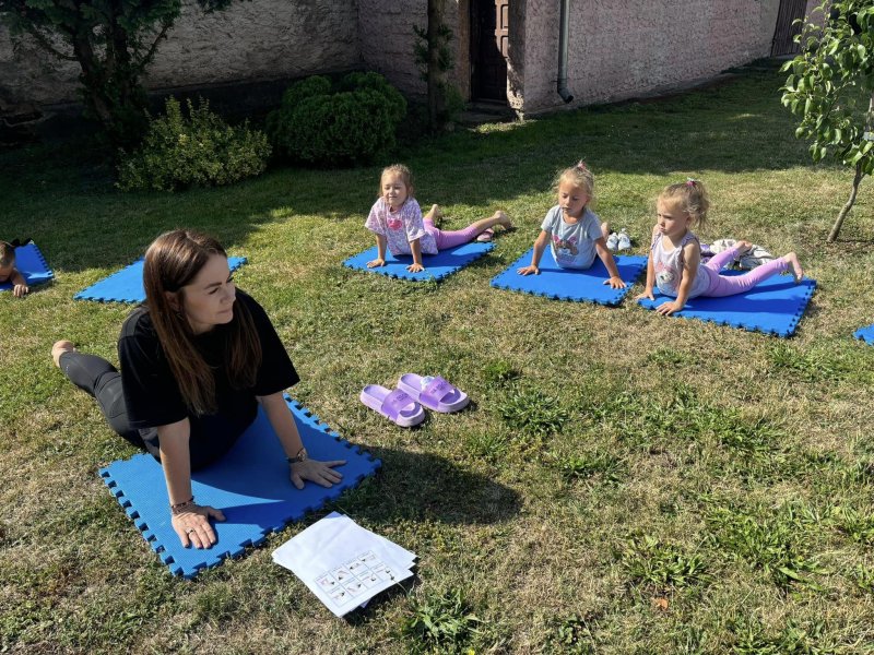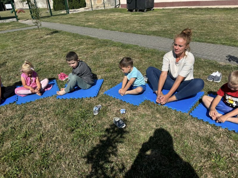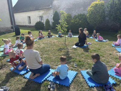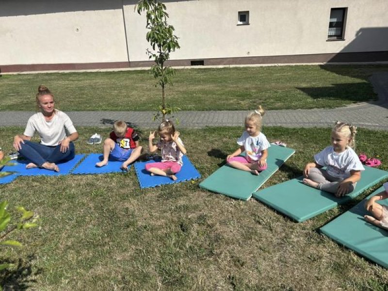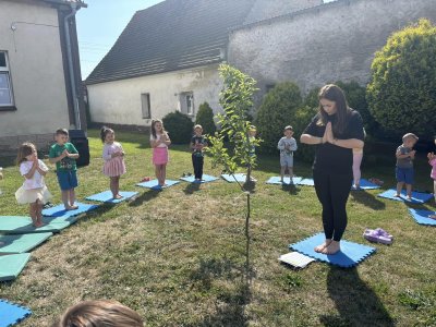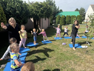 W poniedziałek, 24 czerwca, w Przedszkolu z samego rana odbyły się zajęcia jogi na świeżym powietrzu. Ćwiczenia te pozwalają się zrelaksować i wyciszyć, a co najważniejsze sprawiają dzieciom ogromną frajdę – bo są prowadzone w formie zabawy. Dzieci, które uczestniczą w zajęciach Jogi częściej skupiają się na pozytywnych aspektach życia. Są bardziej świadome siebie i otaczającego je świata.