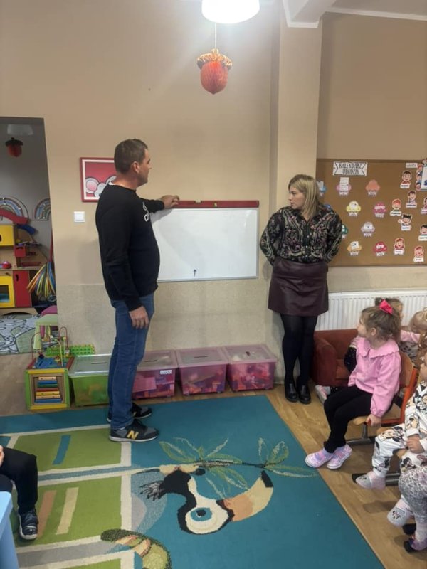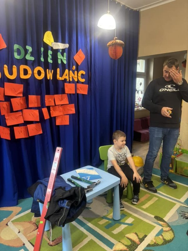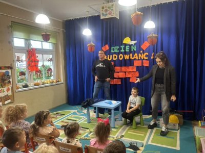 Dnia 3.10.2024r. odbył się „DZIEŃ BUDOWLAŃCA” w naszym przedszkolu. Prezentacje tak ważnego zawodu przeprowadził Piotr Biela tatuś naszego Wojtusia.