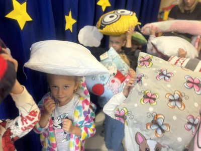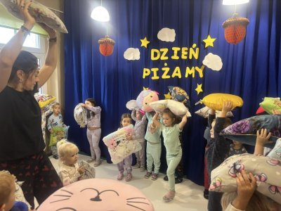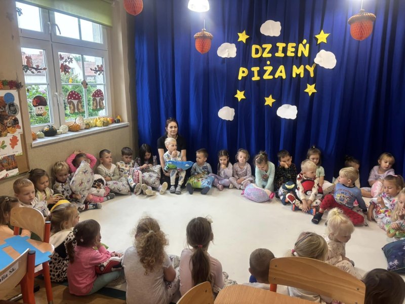 Tego dnia wszystkie dzieci, pojawiły się w przedszkolu w piżamach. Były pokemony, misie, super bohaterowie i wiele innych postaci z krainy bajek. Dzieci założyły swoje mięciutkie kapcie, ulubione piżamki i cieplutkie szlafroczki.
