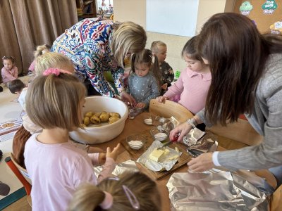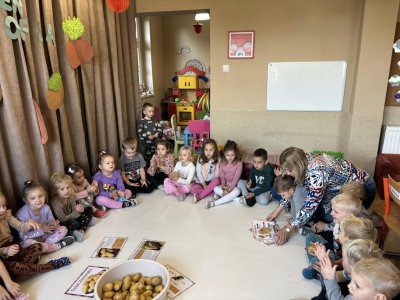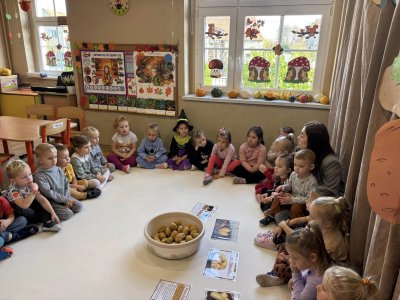 W piękny, październikowy poniedziałek dzieci z przedszkola postanowiły wraz ze swoimi wychowawczyniami uczcić „Święto pieczonego ziemniaka”. Przedszkolaki szybkim krokiem zmierzały na plac przedszkolny.