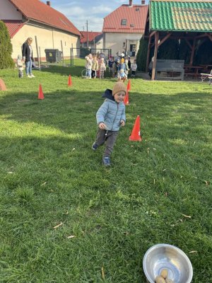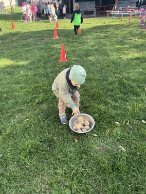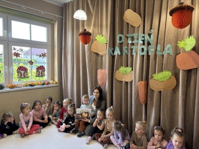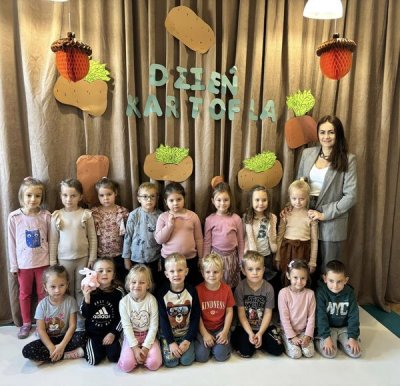 Ziemniak był głównym bohaterem dnia i towarzyszył w zabawach i konkursach. W oczekiwaniu na upieczone ziemniaki śpiewaliśmy piosenki przy ognisku oraz rozwiązaliśmy ziemniaczane zagadki. Przedszkolaki wykazały się znakomitą wiedzą znajomości potraw wykonywanych z ziemniaków. Wszyscy zebrani mogli wykazać się sprawnością w zbieraniu ziemniaków do koszyczków, szybkością w slalomie, zwinnością w noszeniu ziemniaka na łyżce. Mamy nadzieję, że wspólnie spędzony czas przyniósł wszystkim wiele radości i dostarczył pozytywnych wrażeń. Ten jesienny dzień pachnący pieczonym ziemniakiem na pewno wszyscy będą długo pamiętać.