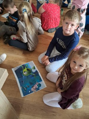 "Bajkostwory i potwory"- ciąg dalszy:) Dziś temat zgłębiła grupa "starszaków" udając się do biblioteki. Pani Czesław Justyna Zbroja rozmawiała z dziećmi o znanych i lubianych bajkach. Przedszkolaki omawiały wylosowane rekwizyty z "pudełka wyobraźni". Na koniec wspólnymi siłami, ozdobili bajkowych bohaterów. Dziękujemy Pani Justynce za wspaniele przygotowane zajęcia.
