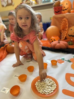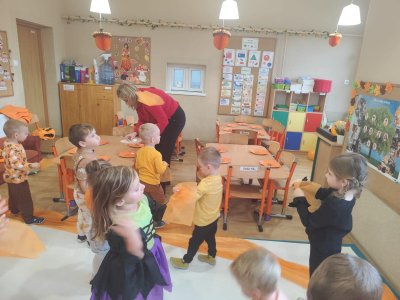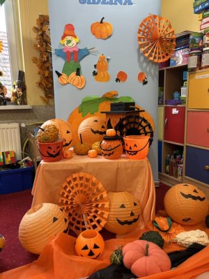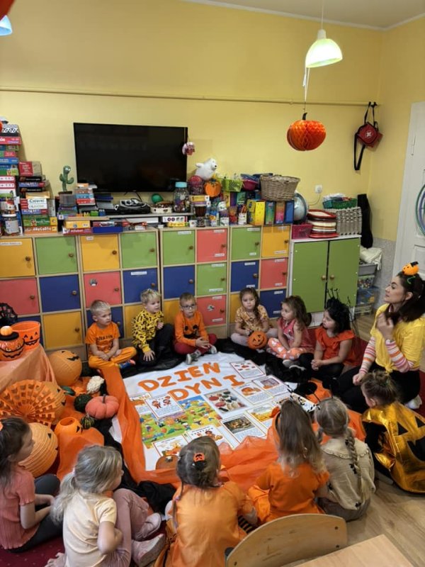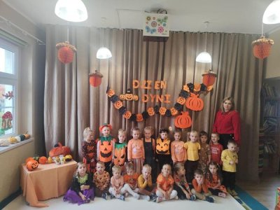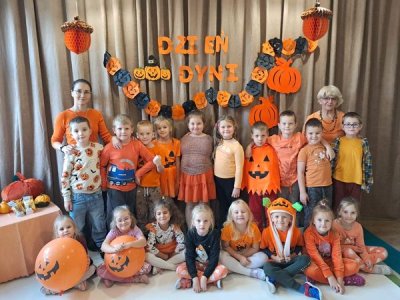 31 października w naszym przedszkoliu odbył się Dzień Dyni. Wspólnie uczestniczyliśmy w zajęciach, podczas których poznaliśmy bardzo zdrowe i urodziwe warzywo jakim jest dynia. Tego dnia przynieśliśmy do przedszkola dynie i ubraliśmy się na kolor pomarańczowy. „Dzień Dyni” pozwolił nam poznać wielką różnorodność dyń i wzbogacił naszą wiedzę na ich temat. Wzięliśmy udział w licznych zabawach z udziałem dyni. Ten dzień był pełen wrażeń i radości. Nasze Panie zadbały o pyszną zupkę dyniową. Przepyszna-palce lizać.